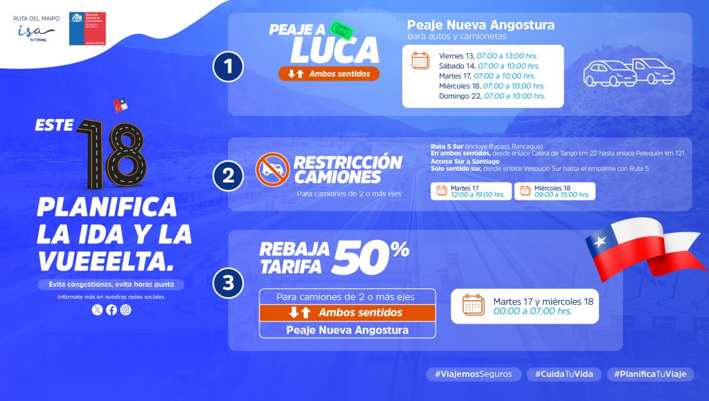 “La logística de este plan ha sido meticulosamente diseñada para gestionar el aumento en el flujo vehicular y mitigar las externalidades negativas asociadas a la movilización masiva. Entre las acciones implementadas se encuentran operativos especiales de fiscalización, la habilitación de transfers en puntos estratégicos de la ruta, el despliegue de grúas, maquinaria especializada, asistencia vial las 24 horas y la presencia en terreno de todo el equipo de Operaciones durante el periodo de contingencia, con el fin de garantizar una respuesta rápida ante cualquier eventualidad.”